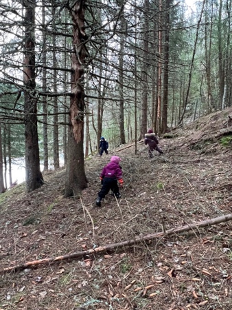 Barnehagens beliggenhet er i natur og skogmiljø. Vi har to faste turdager i uken, men drar og gjerne på spontante turer. Vi har ulike lavvoplasser, bålplasser, gapahuker, vår egen troll- og bokstavskog og vi har bygget lekeplass i skogen med naturelementer, der "Børjabanen" er en favoritt. Gjennom barnehageåret her på gårdsbarnehagen har vi et overordnet prosjekt med fokus på natur og friluftsliv.